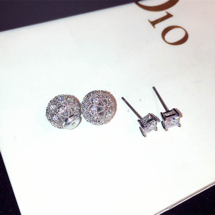 South Korea Zircon slats female front and rear double-sided hollowed-out inlaid drill mini earrings fashion temperament sweet and Korean version earrings