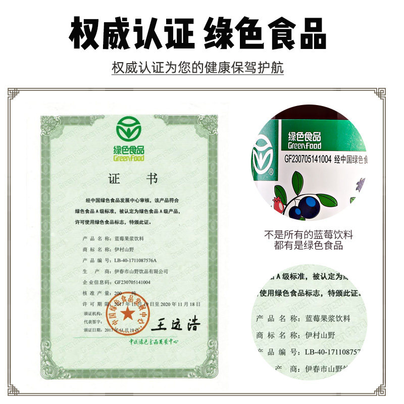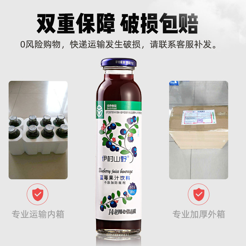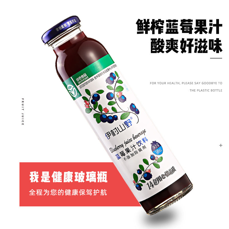 Yimura Mountain wild blueberry juice drink glass bottle Yichun specialty 70%blueberry pulp juice