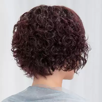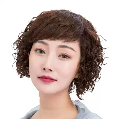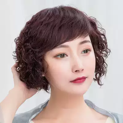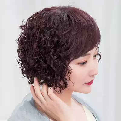 Wig female short hair short curly hair sleeve full hand woven fluffy natural real hair middle-aged and elderly mother full real hair silk headgear