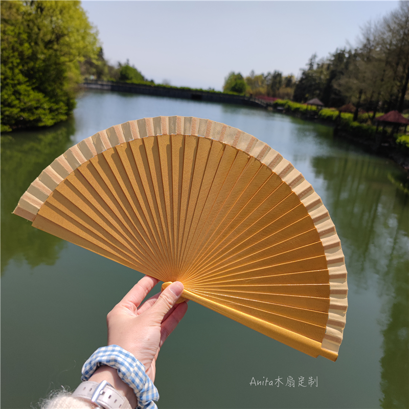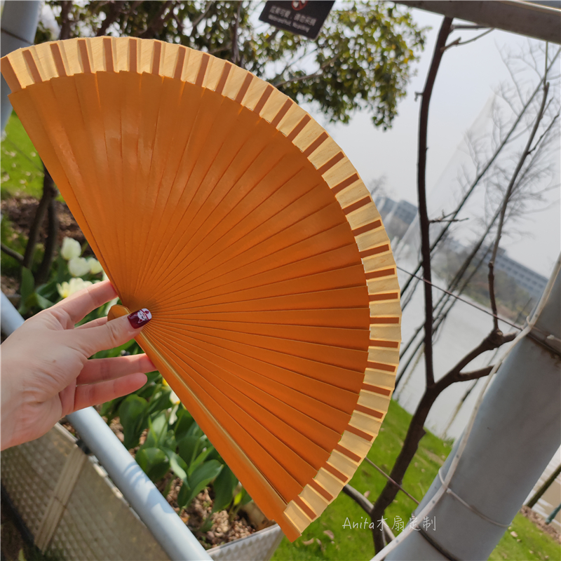 Anita wooden country fan dance fan opening and closing with sound deco-face ambush prop fan gold fan baking paint fan