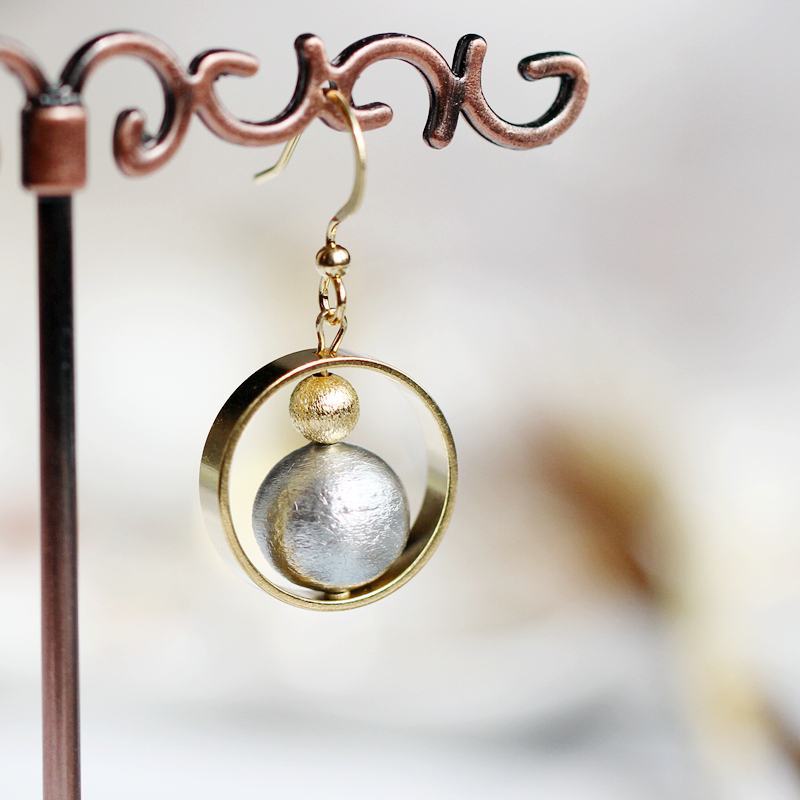 14K bag gold plated copper plated plated gold concise with ball ear hook ear crash ear button pearl DIY small accessories