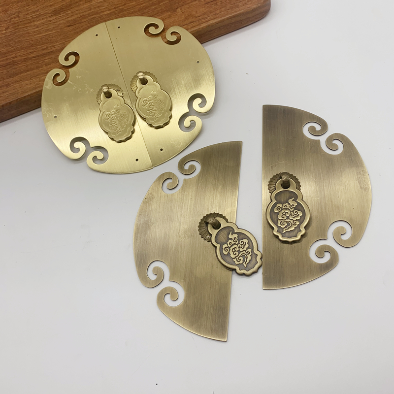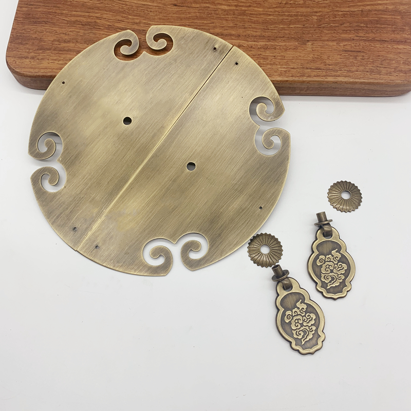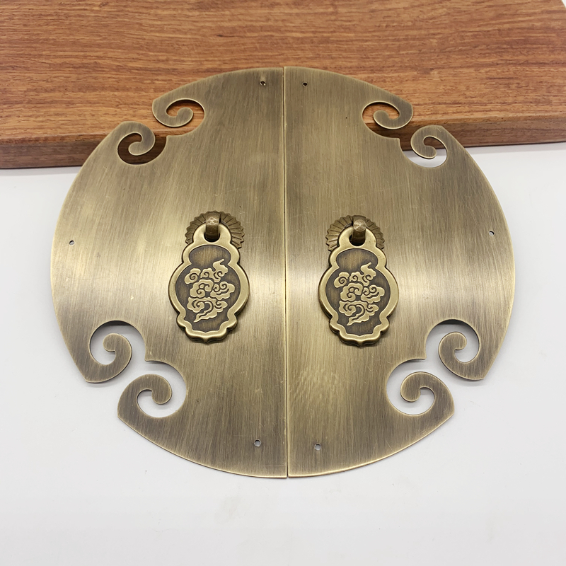 New Chinese imitation ancient Ming and Qing furniture Accessories Pure Copper Cabinet Door Wardrobe Whole Cabinet Round Door Plate Copper Handle Handle