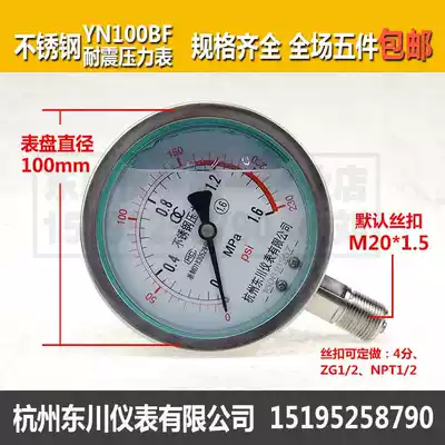 All stainless steel shock-resistant pressure gauge YN100BF seismic anti-corrosion high temperature barometer water pressure gauge full specifications
