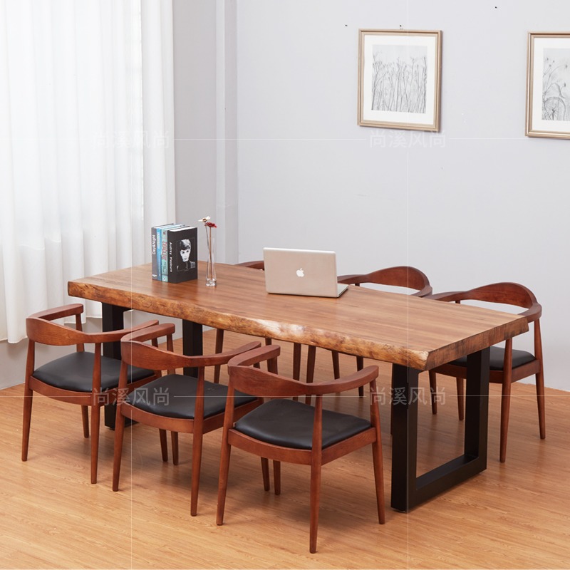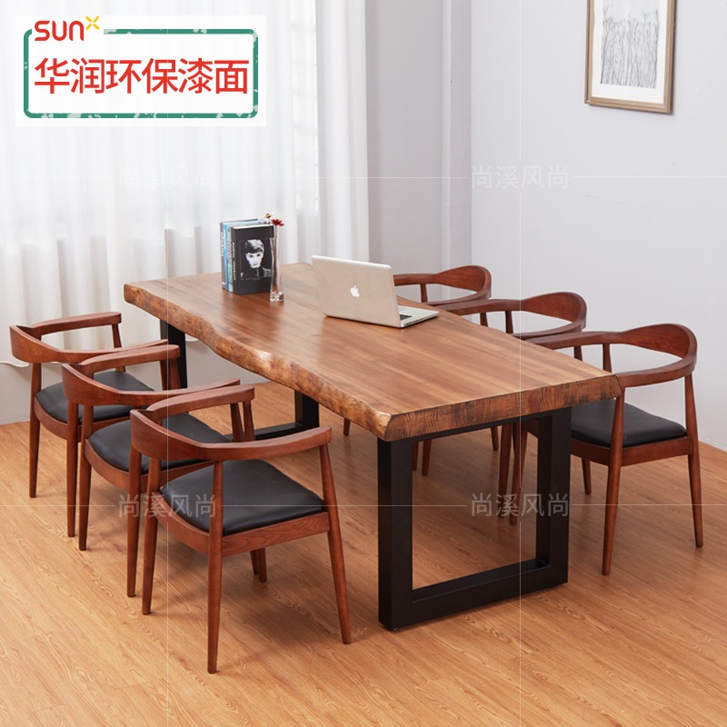 Simple and modern solid wood conference table long table retro negotiation large board table log workbench loft office long table