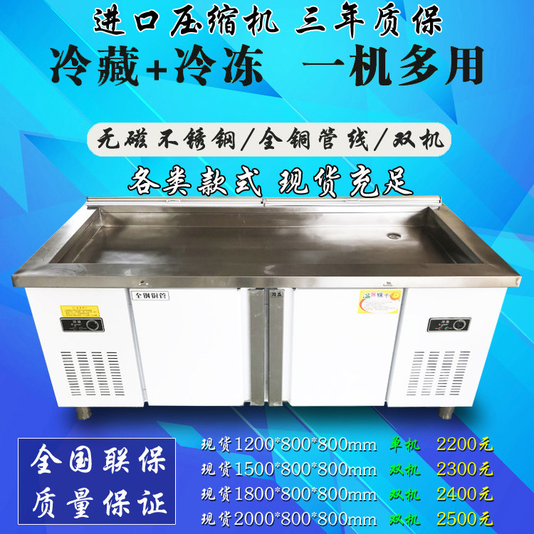 Direct sales 2 meters stainless steel seafood fish ice table Supermarket refrigerated ice storage display cabinet frozen table freezer