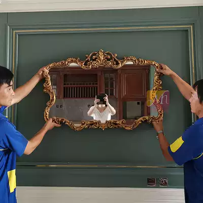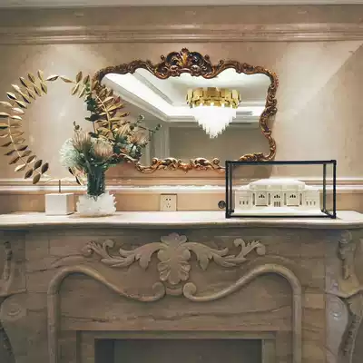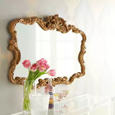 European vintage golden porch fireplace decorative mirror carved dressing table cosmetic mirror dressing room wall-mounted bathroom mirror