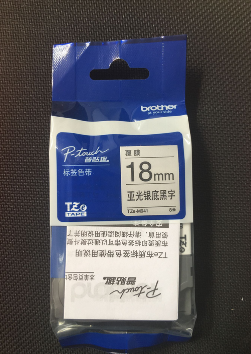 Brother Brother Ribbon TZe-SM941 matt silver bottom black word strong sticky film 18MM printing paper original