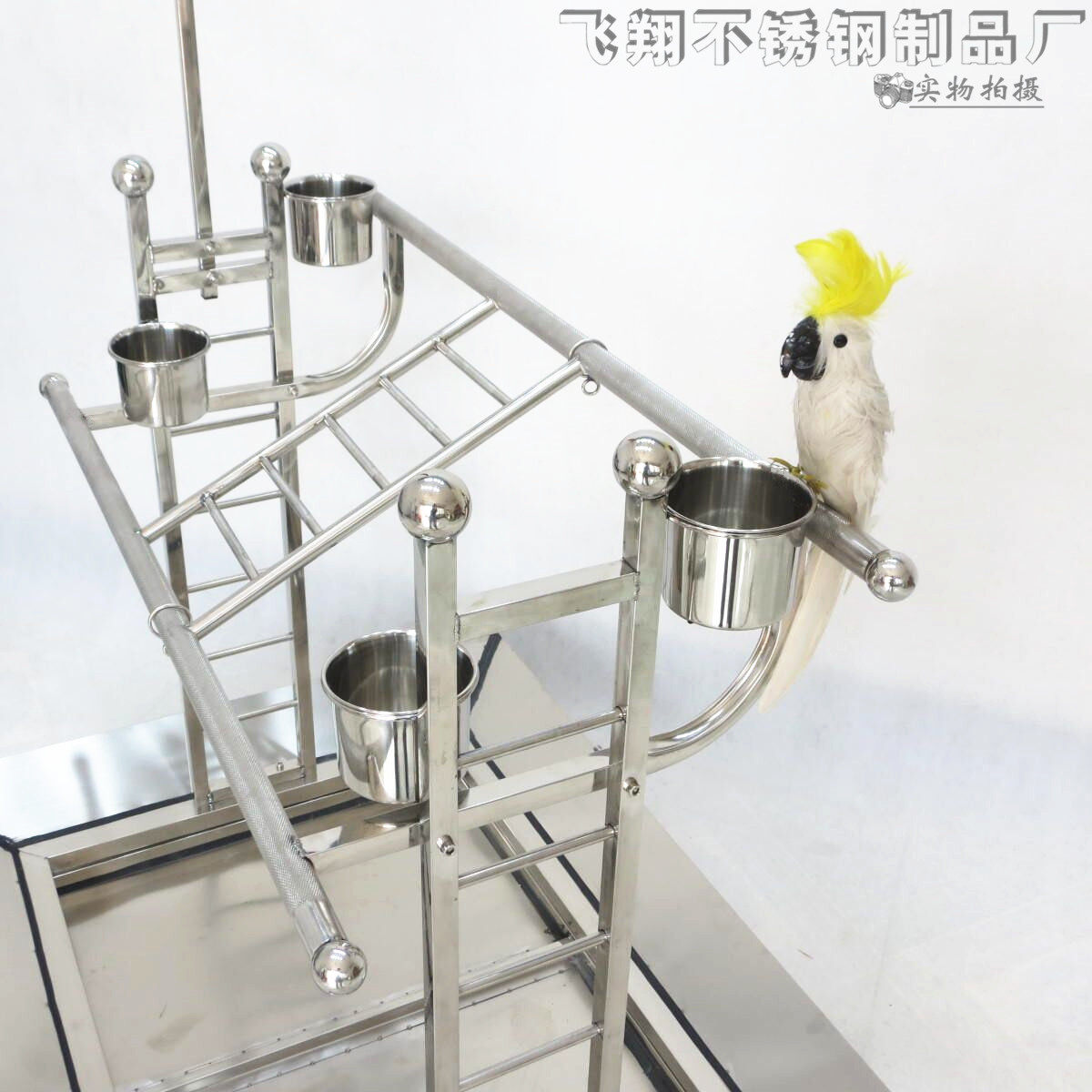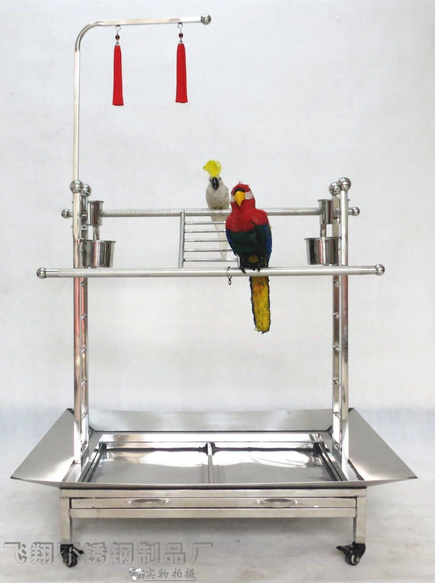 Double station rod large medium small type stainless steel parrot bird stand shelf thickened metal belt toy hook skirt