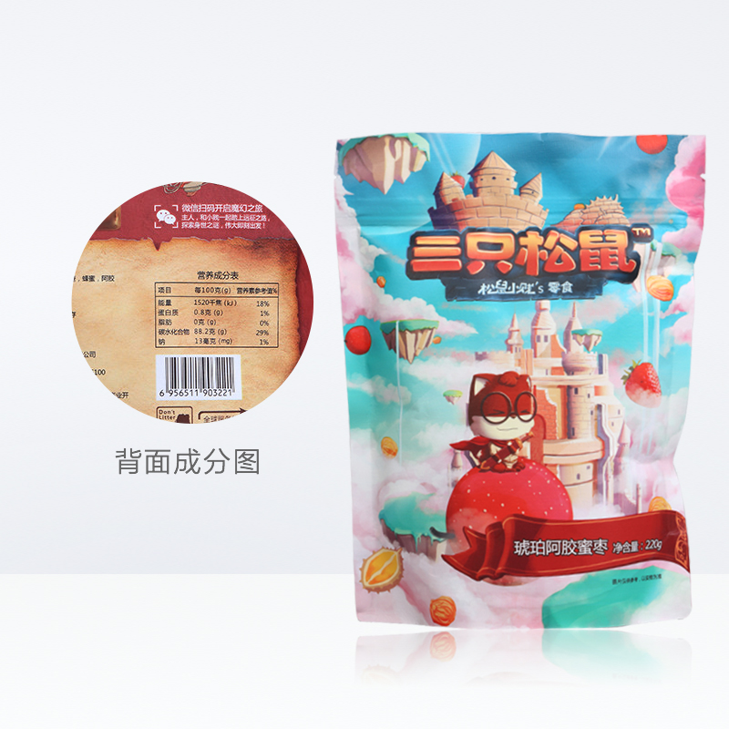 Three squirrels Amber Hide Gelatin Date 220gx1 Bag Casual snacks Candied Fruits Dried Fruits Dried Fruit Snack