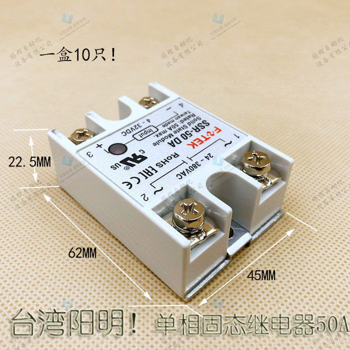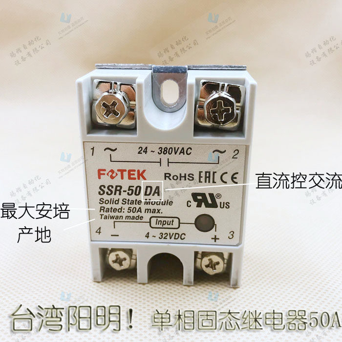 Original Taiwan Yangming FOTEK single phase solid state relay 50A SSR-50DA DC control AC 220V