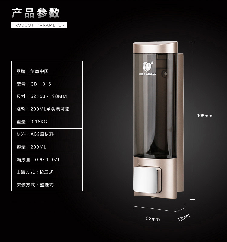 Hotel Bathroom Wall-mounted Soap Dispenser Single Head Soap Liquid Case Hand Soap Liquid Bottle Manual Plastic Hand Wash Liquid Box Soap Dispenser
