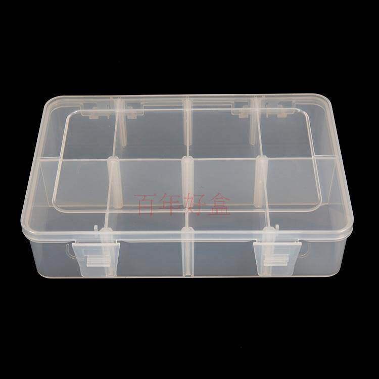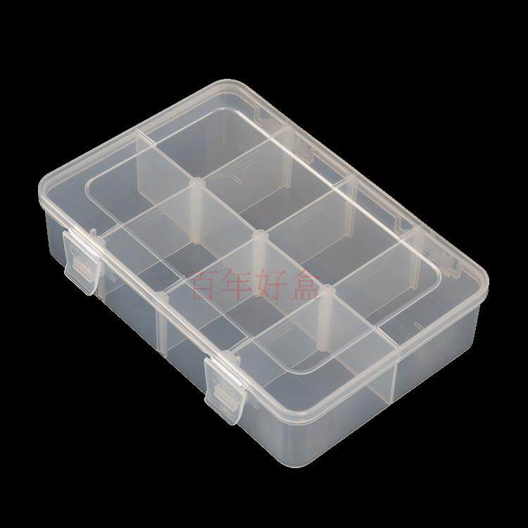 Rectangular 8-grid plastic lattice box transparent detachable parts storage box screw separation tool box with lid
