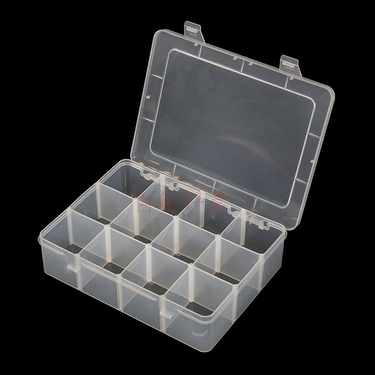 Detachable rectangular parts storage box hard packaging tool box 12 compartments transparent plastic lattice box
