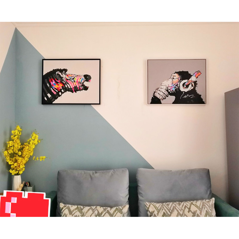 Double spell filling color digital oil color painting cartoon animation personality animal orangutan zebra DIY hand painted living room decoration painting