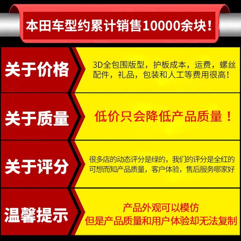 10th generation Civic (fully surrounded by 3D plastic steel guard) 10th generation Civic(fully surrounded by 3D manganese steel guard) 10th generation Civic(fully surrounded by 3D aluminum magnesium alloy) 10th generation Accord(fully surrounded by 3D plastic steel