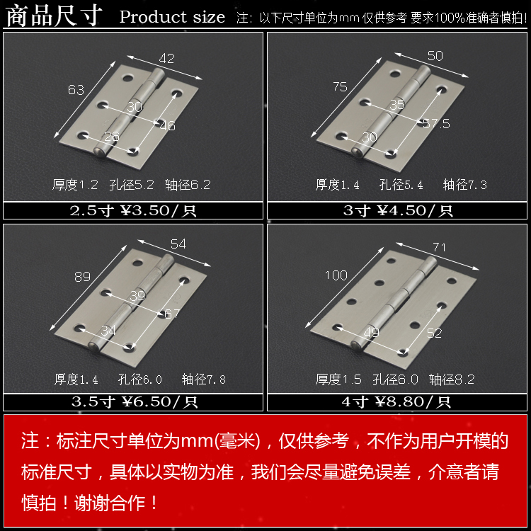 AAA positive Zong 304 stainless steel hinges 1 inch 1 5 inch 2 inches 2 5 3 inches 3 5 4 inches furniture hinges small