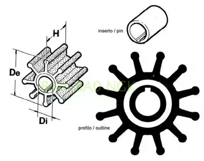 Yacht seawater pump impeller Sherwood 17000K John Deere Cummins Caterpillar
