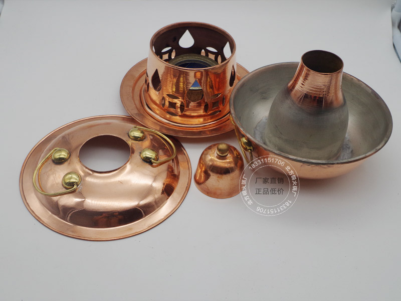 Thickened Pure Red Copper Thickened Copper Pan Mandarin Duck old Beijing Boiling Meat Red Copper Hot Pot Pan Single Alcohol Stove Copper Hot Pot