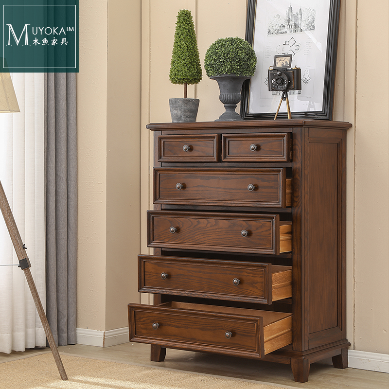Solid wood Six-Bucket Five-Bucket Cabinet White Wax Wood American Country Locker Mercury Cabinet