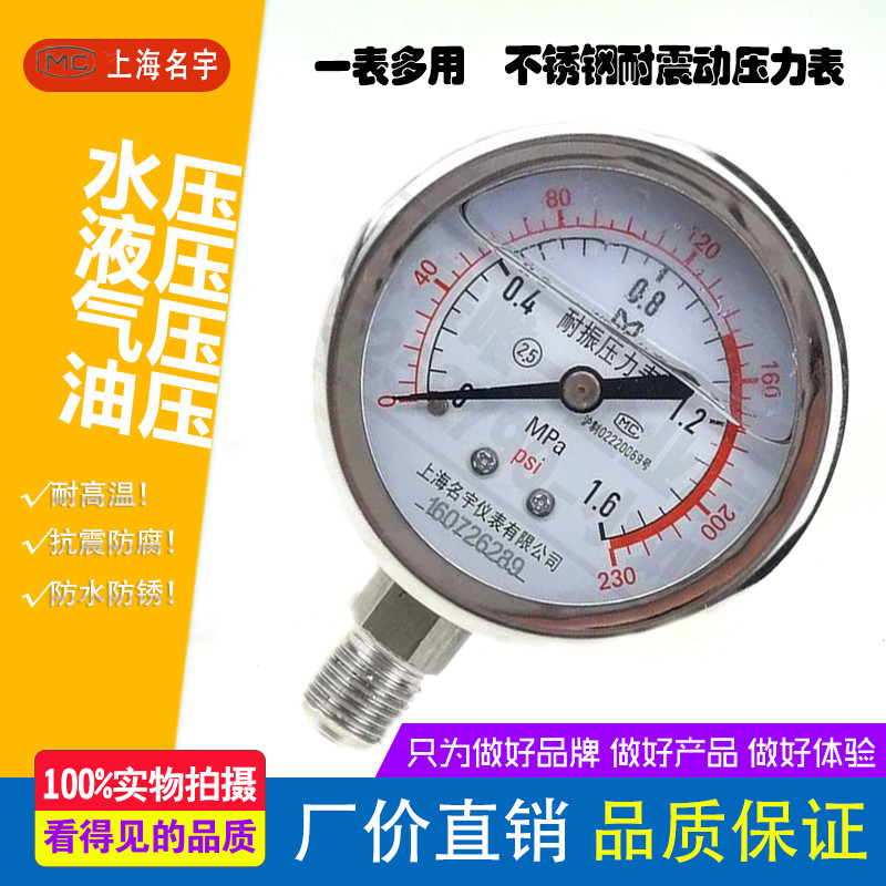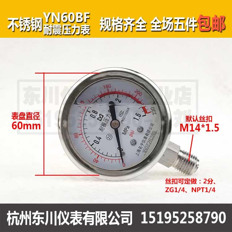 Full stainless steel anti-shock pressure meter YN60BF anti-corrosive and anti-corrosive high temperature pressure gauge water pressure gauge full spec