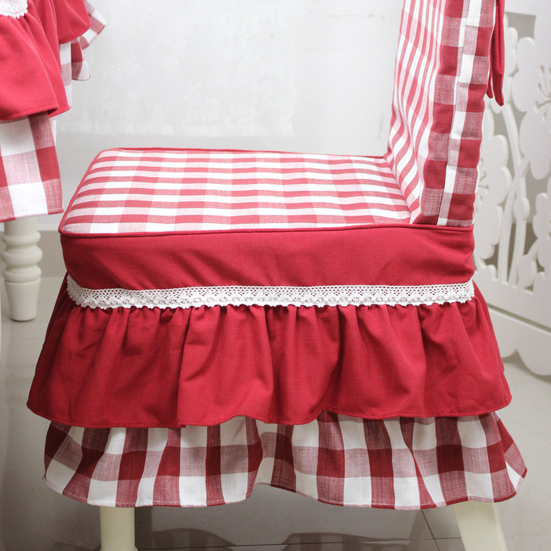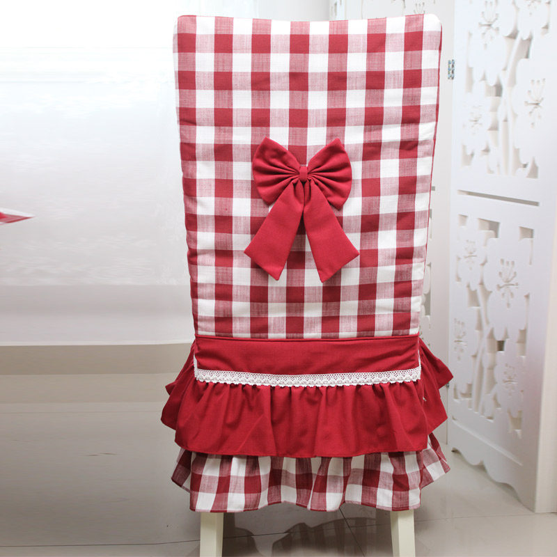 Mediterranean red plaid bow dining chair with chair cover desk and chair can be customized Nordic modern cotton simple