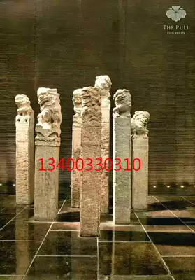 Pile new stone sculpture antique old lion tied Roman column Courtyard hotel town house tied horse stone ornaments