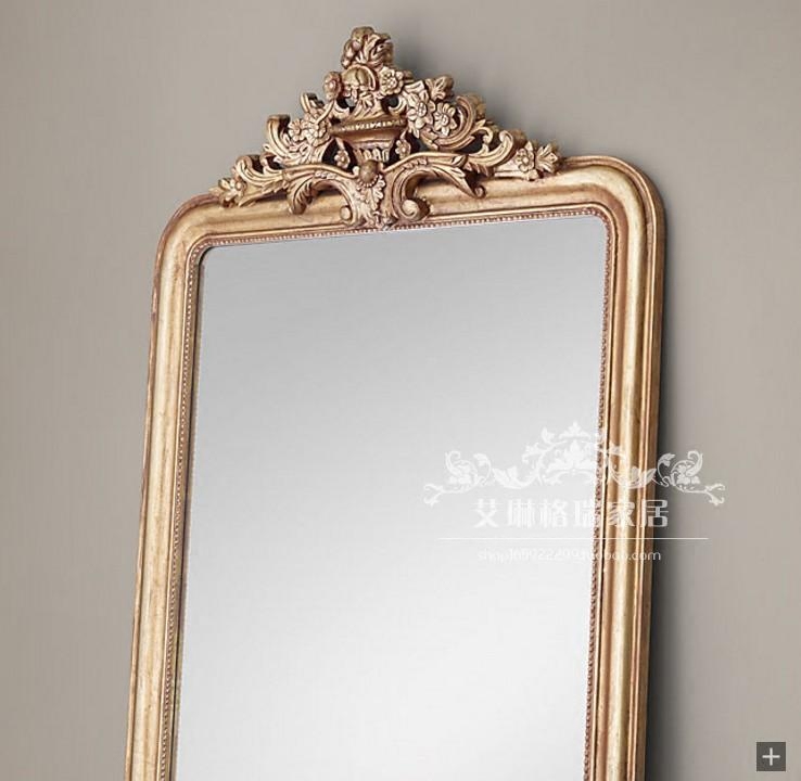 American-style golden retro solid wood old floor mirror full-length mirror French full-length mirror full-length mirror decorative mirror