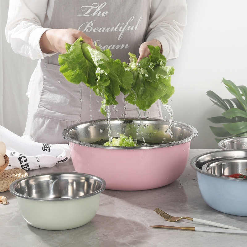 Stainless Steel Basin Thickened Wash Vegetable Basket Kitchen home Bowl Male Suit Round and Faceted Basin Big Color Basin