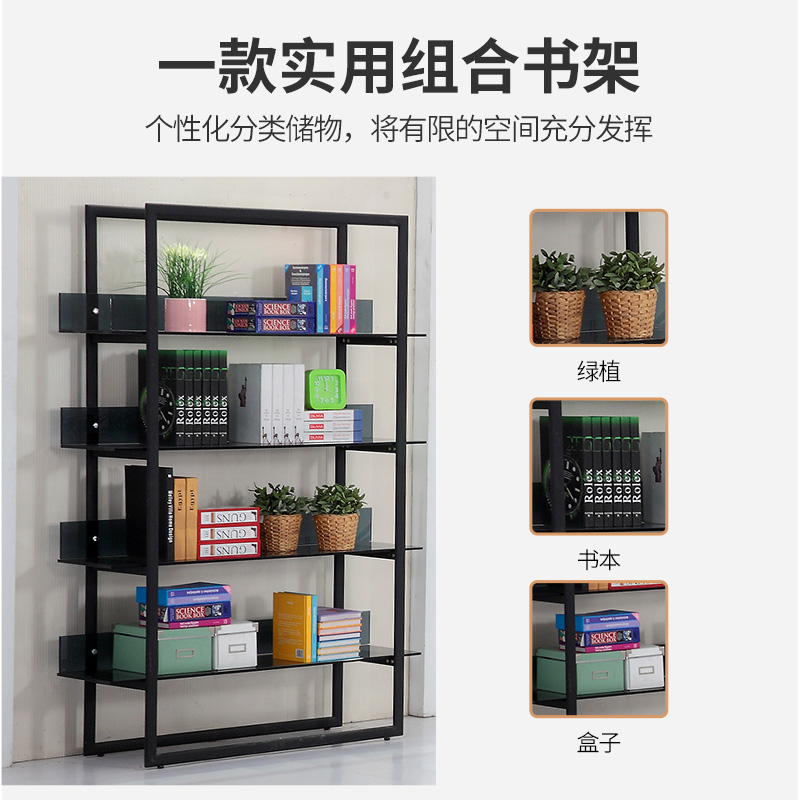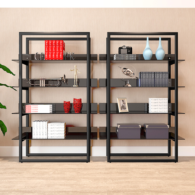 Modern simple metal bookshelf Living room glass shelf Wrought iron partition cabinet shelf Study storage storage bookshelf