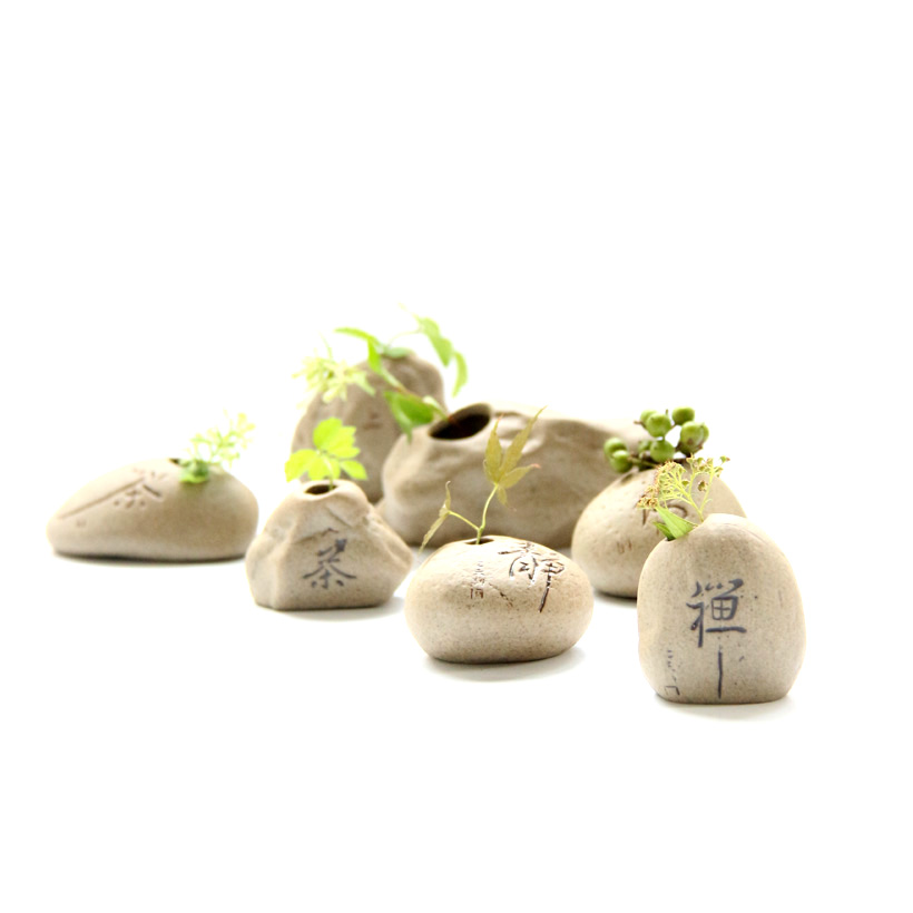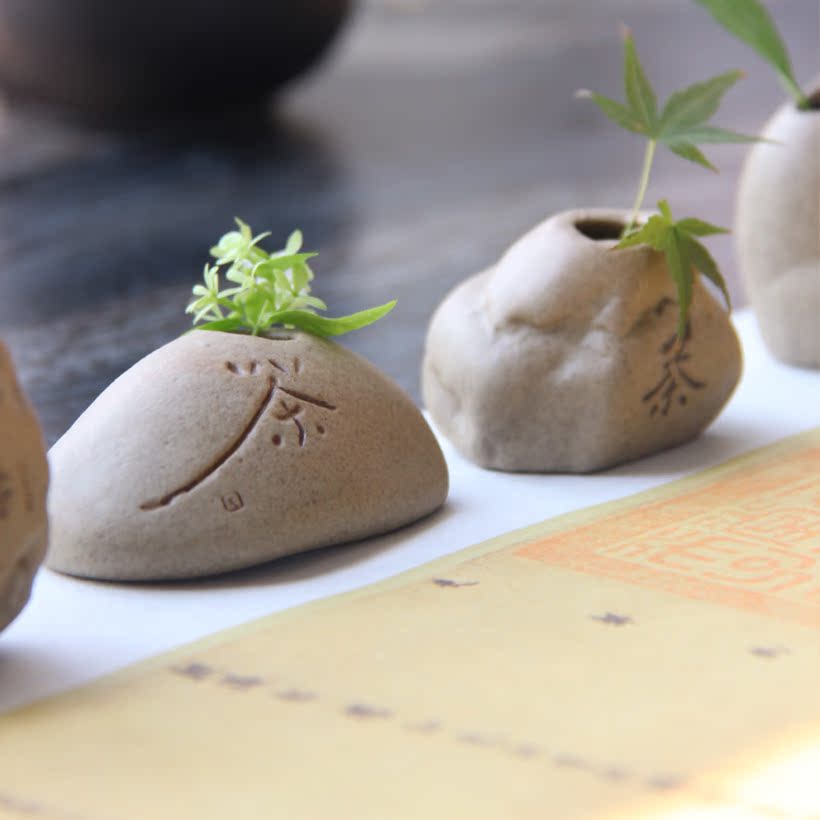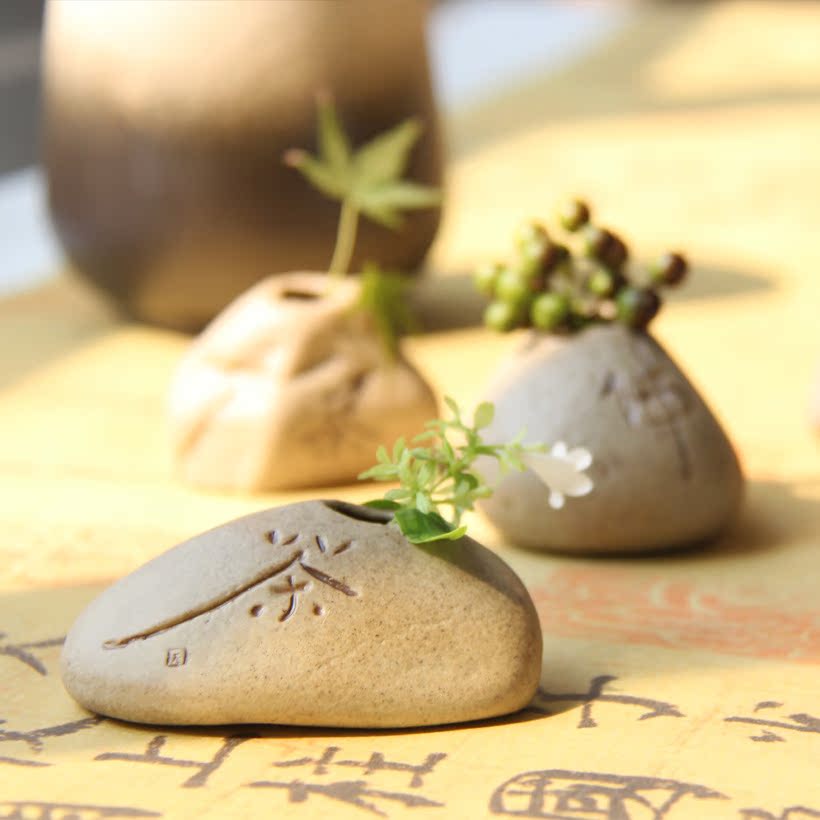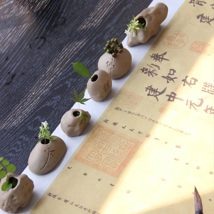 Qianmuen Zen handmade ceramic mini ornaments succulent hydroponic flower vase Japanese-style rough pottery water storage small flower holder