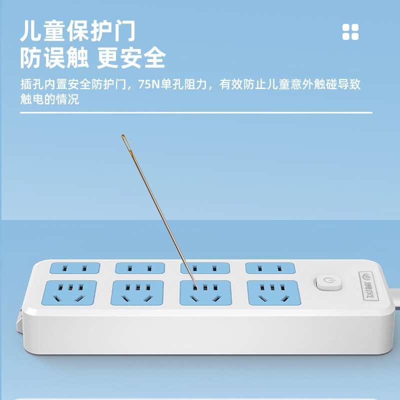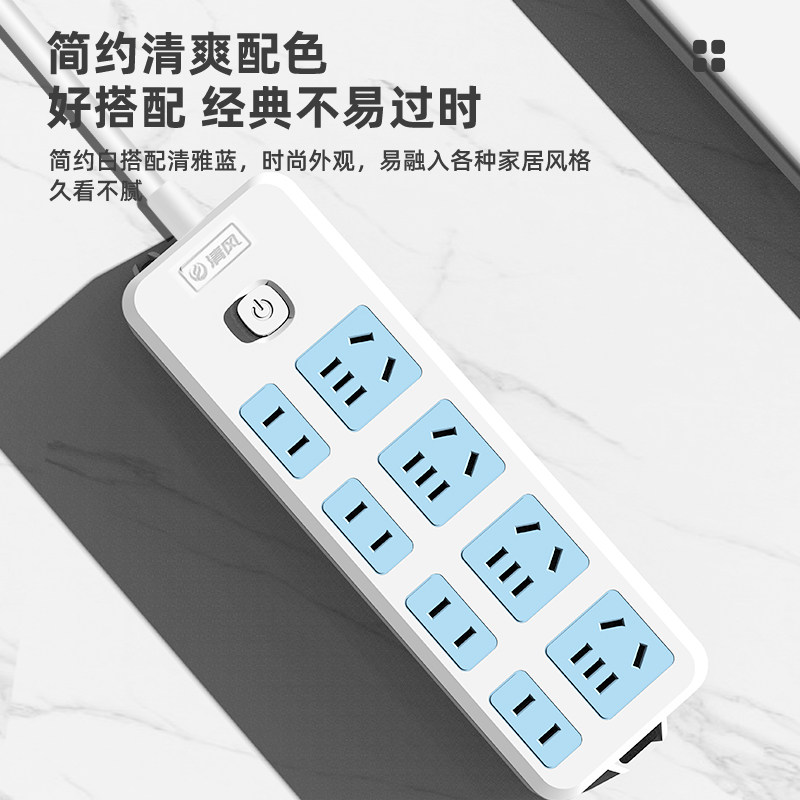Breeze safety socket household plug-in board with line extension line multi-function wiring board porous plug-in switch long line