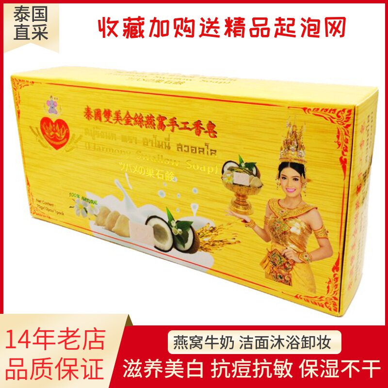 Thai Shuangmei Nest Soap Golden Silk Pure Handmade Essential Oil Finish Bath to remove Acne Moisturizing Female Children Bath