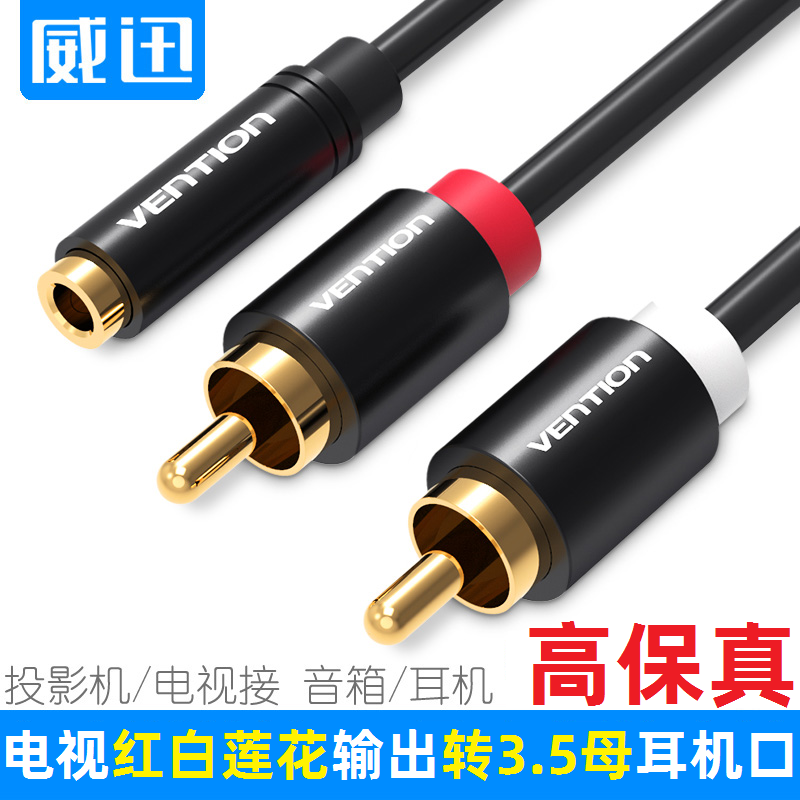 TV AV red and white audio speaker sound headphone output adapter conversion cable Double Lotus revolution 3 5mm female DVD amplifier box Projector set-top box 2rca audio conversion cable one point two