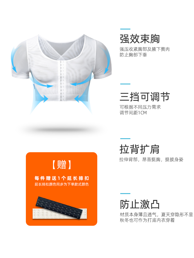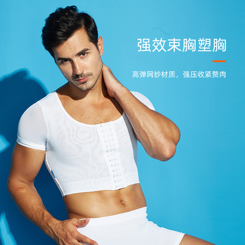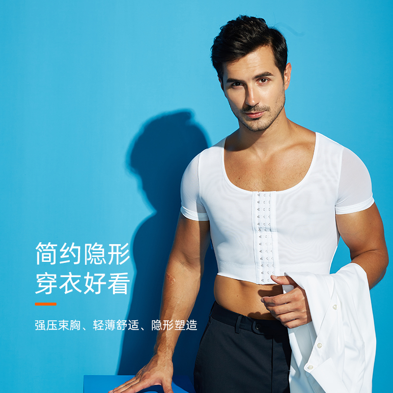 INSMANX Men's Short Sleeve Breast Contour Chest Compression Bandage Chest Shrink Chest Liposuction Post-Liposuction Tights Underwear