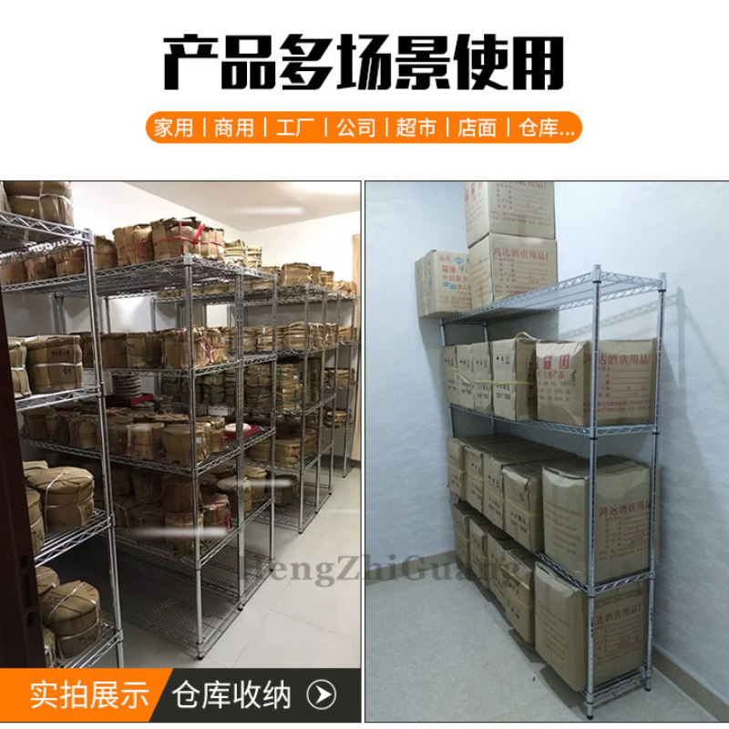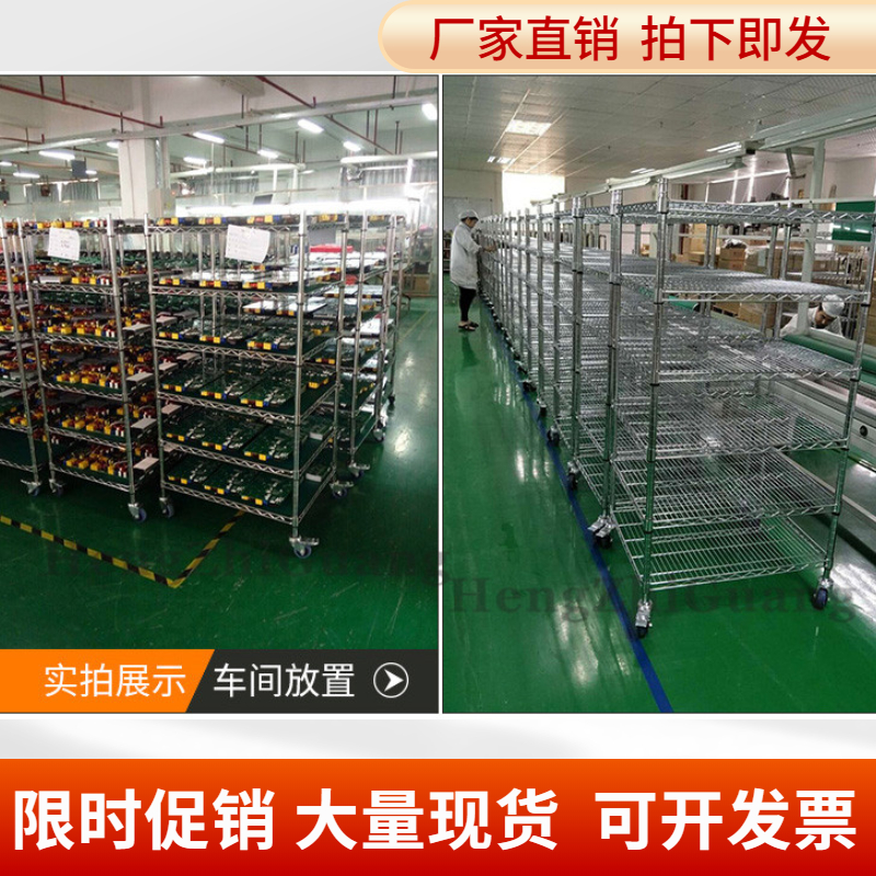 Warehouse stainless steel shelf home with wheel wire mesh mobile rack chrome-plated anti-static material rack display shelf