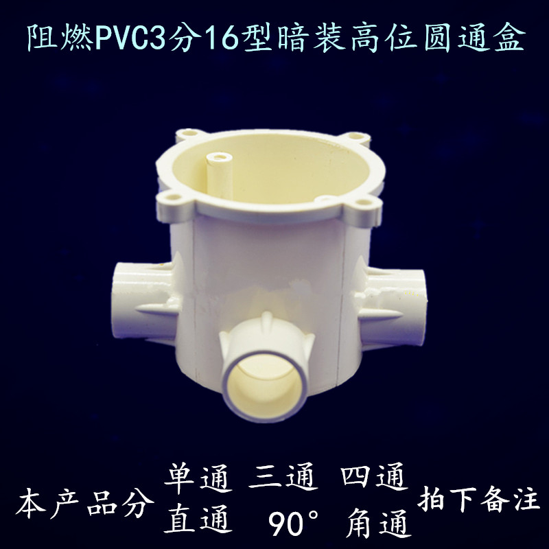 Flame retardant PVC4 points 20 type high commander box round single-pass straight-through three-way four-way pre-buried concealed wiring round bottom box