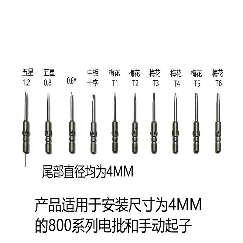 800 series electric batch head mobile phone disassembly screwdriver head five-star 0 8 1 2 medium board cross 0 6Y plum blossom T1-T6