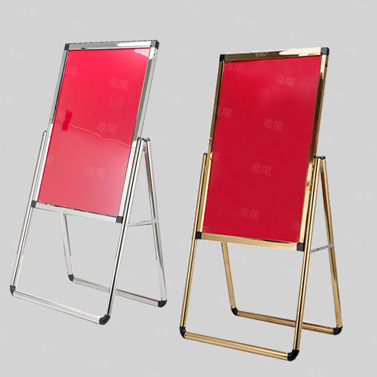 Stainless steel billboard display stand hotel water brand titanium alloy welcome sign outdoor pointing sign poster stand vertical L foot