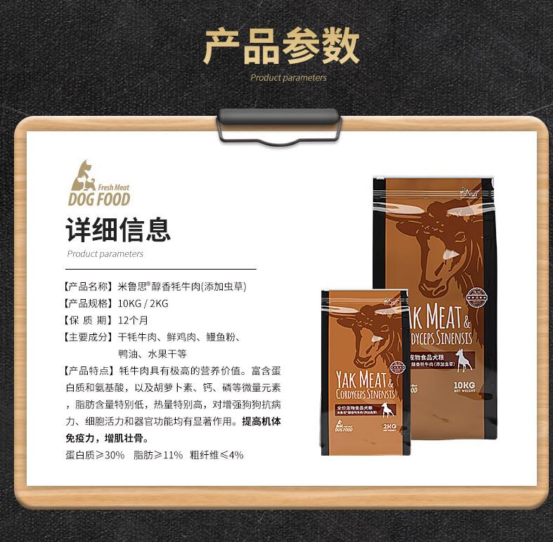 One Neo Pet Miruth Dog Food Fresh Meat Yak Meat Caterpillar Fungus Meme Long Meat Full Dog Period 10KG Milus