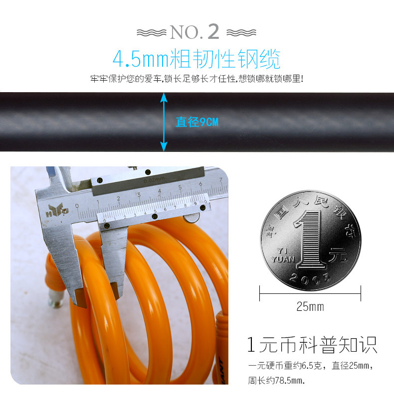 Mountain road bike fixed anti-theft cable key lock Electric car bicycle wire riding equipment winding lock