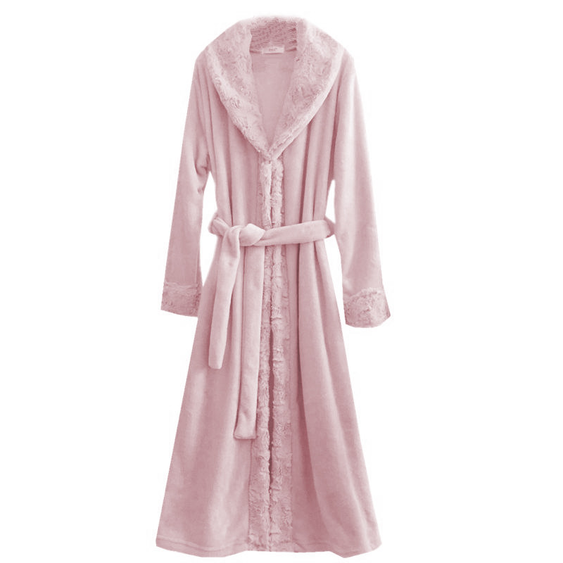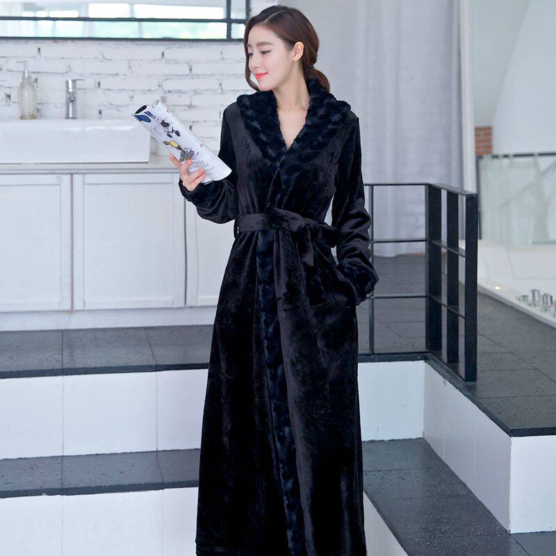 Bathrobe female bride dressing gown winter flannel wedding nightgown lengthened thick coral fleece pajamas sexy home service