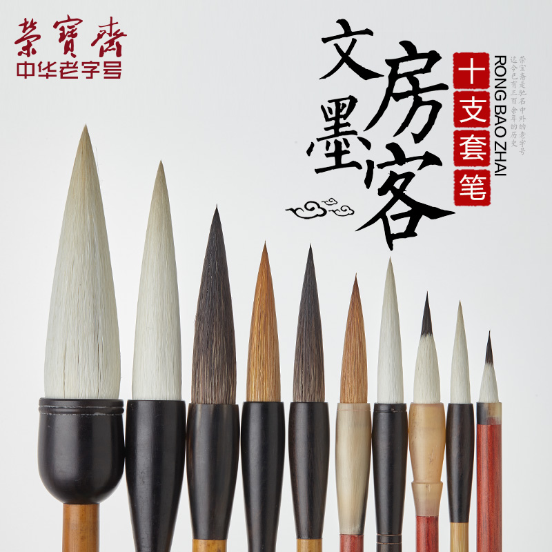 Chinese time-honored Rongbao Zhai brush set study room four treasure gift box boutique set gift size Kai adult wolf milli sheep milli wolf and milli purple and milli set brush 10 sets of pen gift box