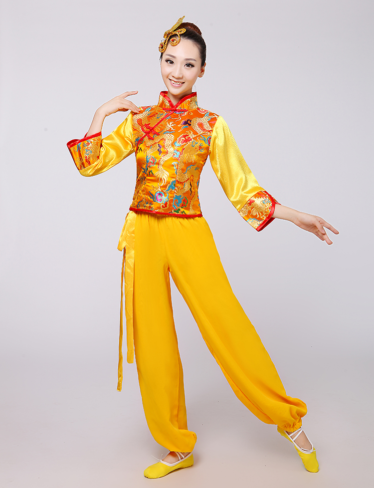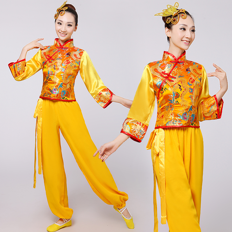 2016 new national dance performance suit Chinese wind drum suit Middle-aged Yangge suit waist drum dance classical fan dance