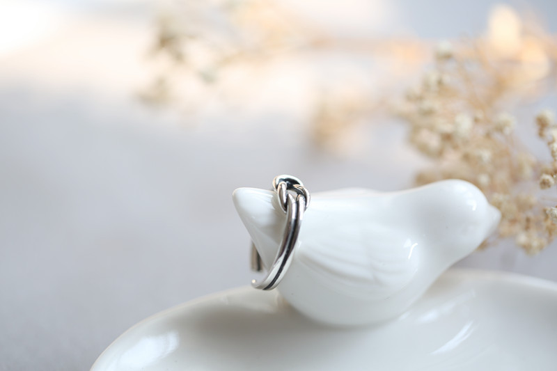 S925 pure silver double wire junction concentric knotting made of old ring brief 100 lap day Korean ring opening anti-allergy woman