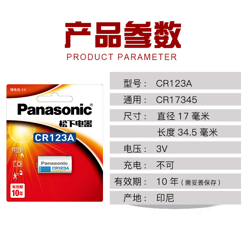 Panasonic CR123A Lithium battery 3V Applicable Mie Xiaomi Smoke siren Fire detectors Anti-firearm Olympus Canon glue Roll negatives Machine camera Water Electrical Table Instrumentation