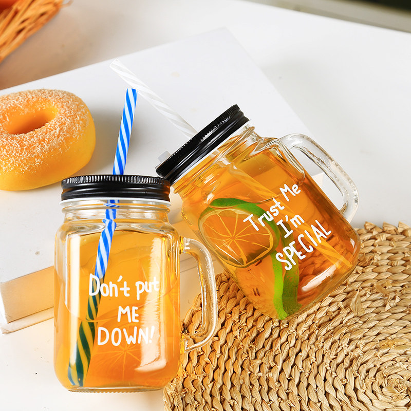 Creative letters with lid and straw glass Mason handle cup juice lemon cup milk tea