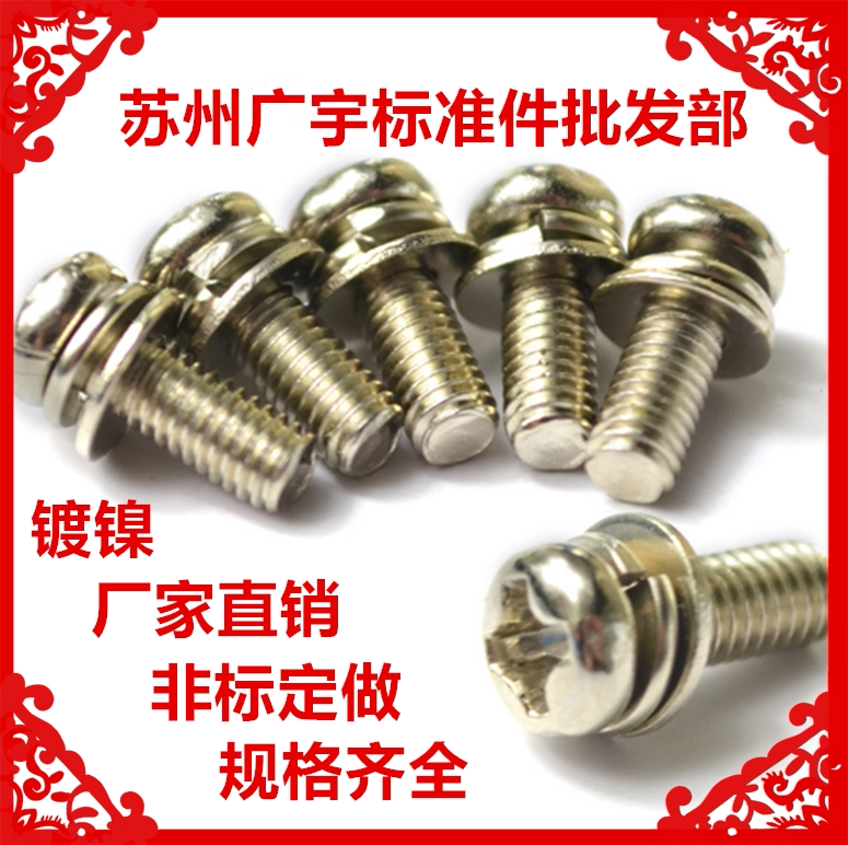 Nickel-plated round head cross disc head three combinations screw head three combined screw plated nickel with self-flat bomb cushion