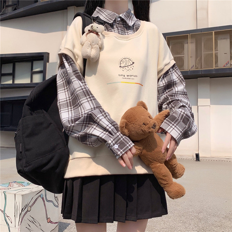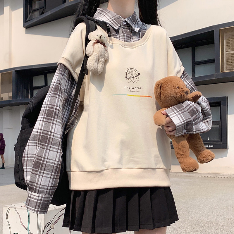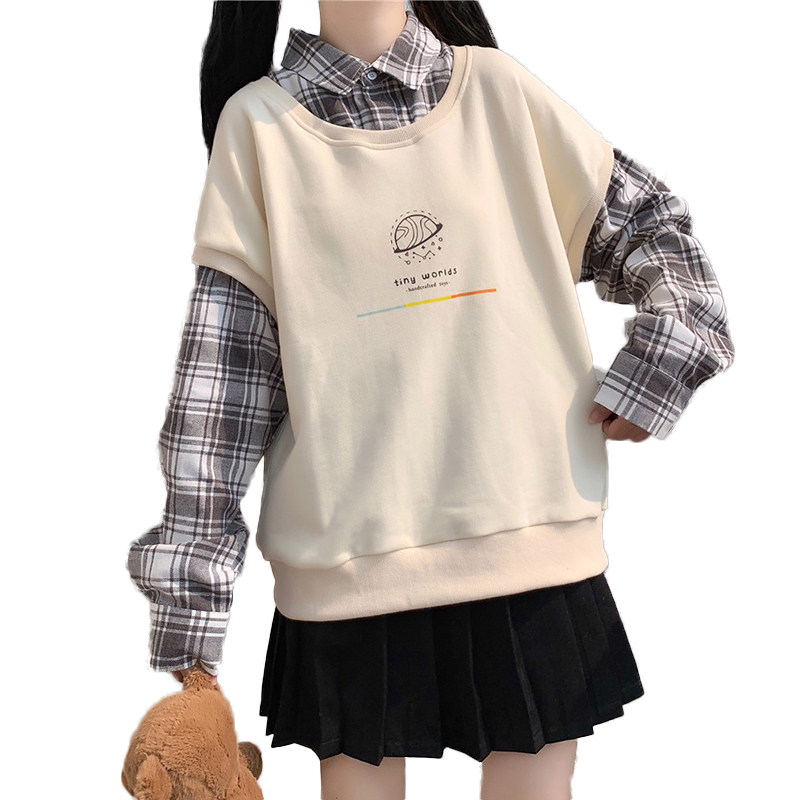 Fake two-piece sweater women's spring and autumn clothes 2022 new junior high school students loose all-match shirt collar clothes