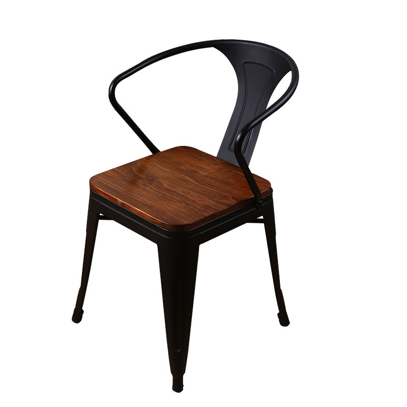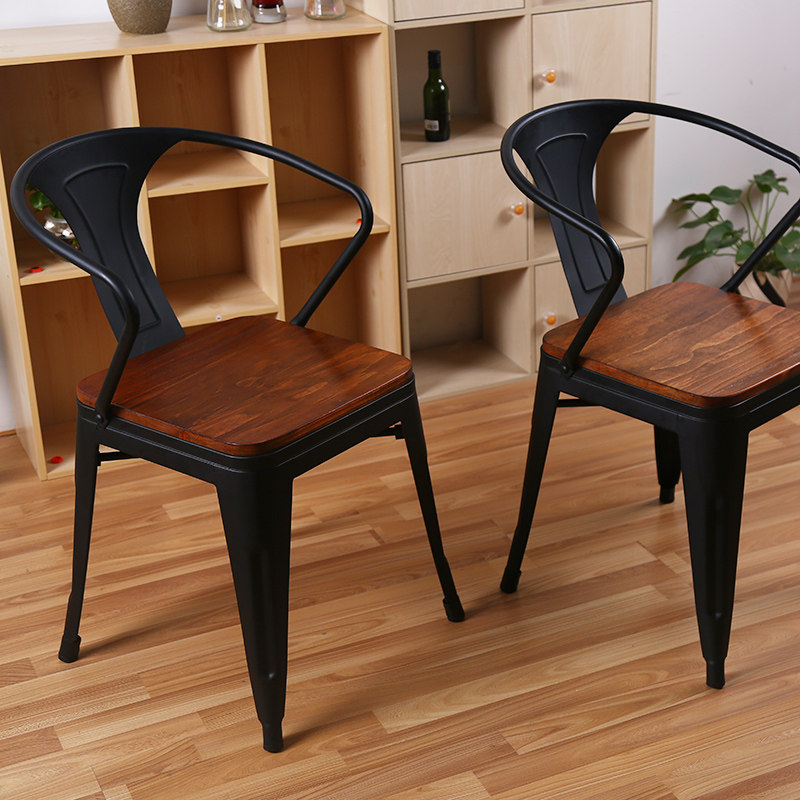 American Iron Chair Soliwood Vintage Single Milk Tea Restaurant Household Armchair Leisure and Backback Chair
