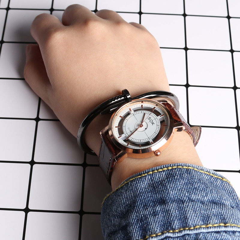 GD same style couple watch British style simple Korean version male and female high school students European and American retro belt trendy watch exo